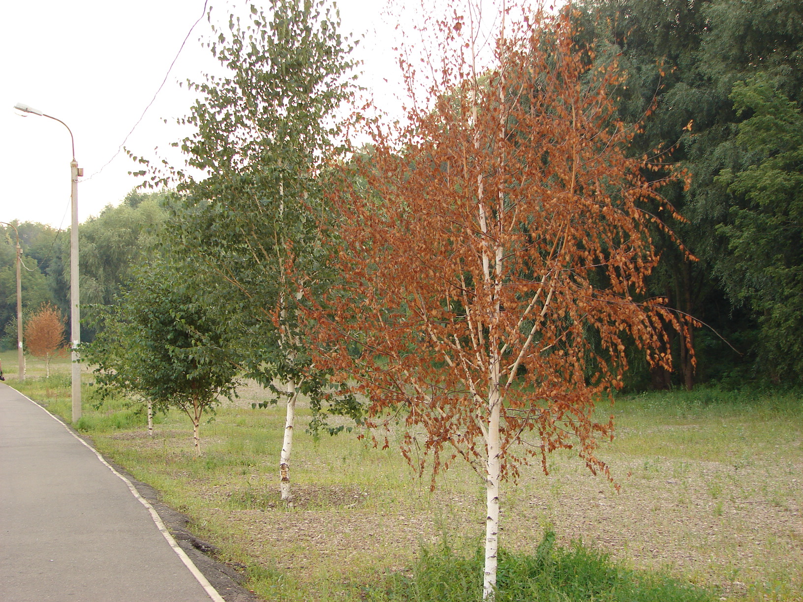 Берёзки вдоль аллеи где-то в Сипайлово