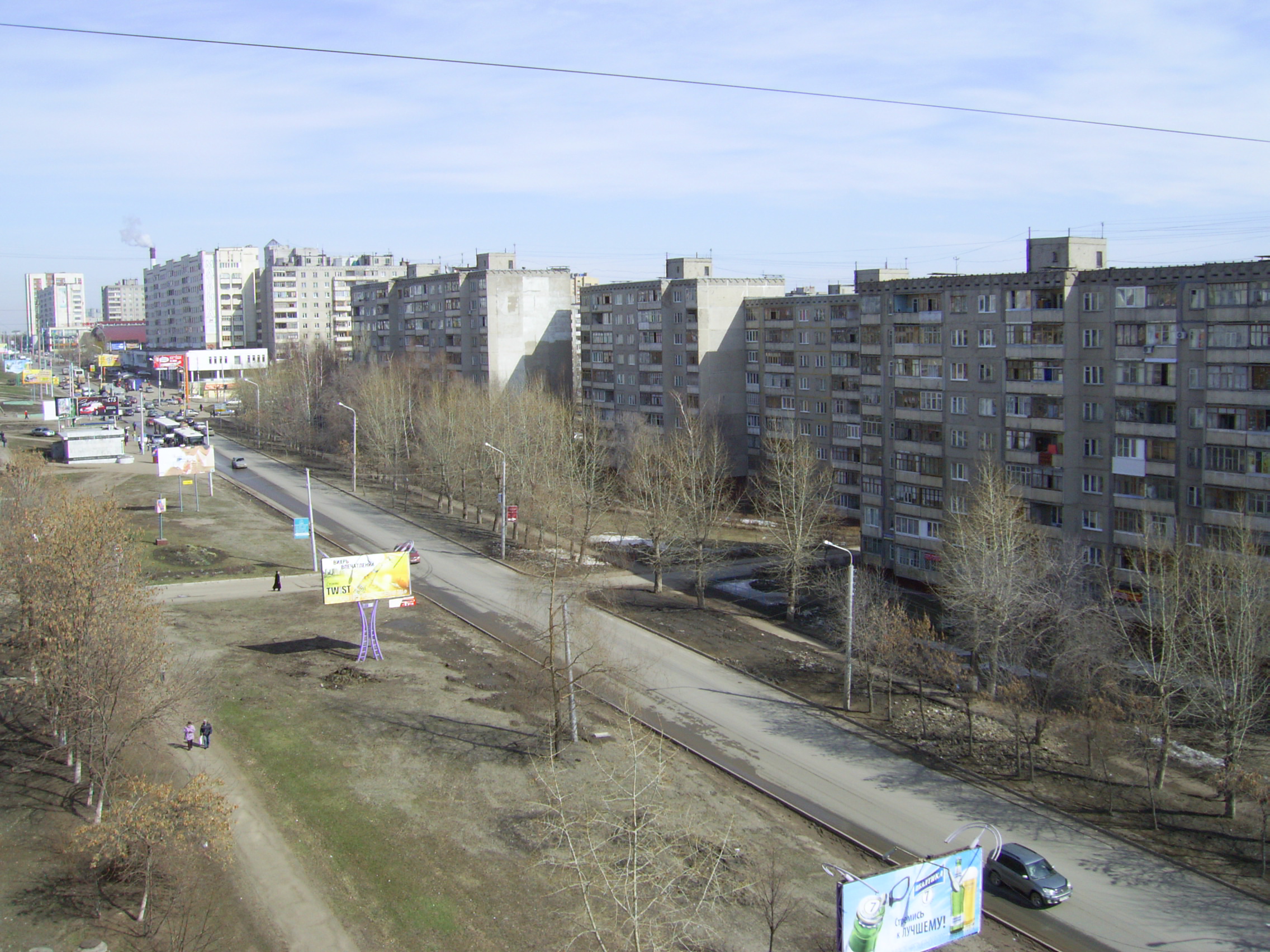 Улица Степана Кувыкина. Вид из моего окна.Эта фотка сделана весной 2008 года. Сейчас эта улица уже в 2 раза шире.