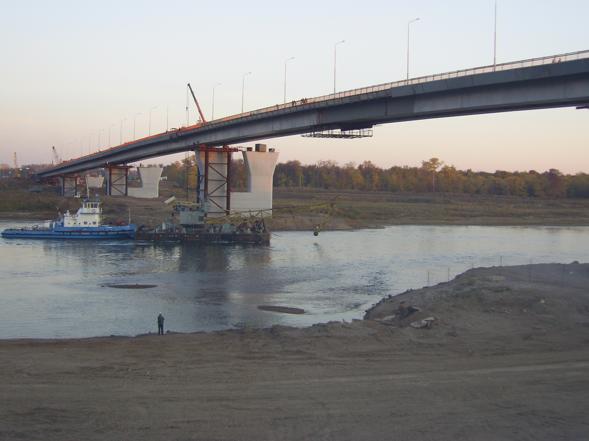 На фото мост построен только наполовину. Сейчас он уже запущен в эксплуатацию. Дорога с трассы M5 через этот мост - самый короткий путь из Сима в Уфу ;)